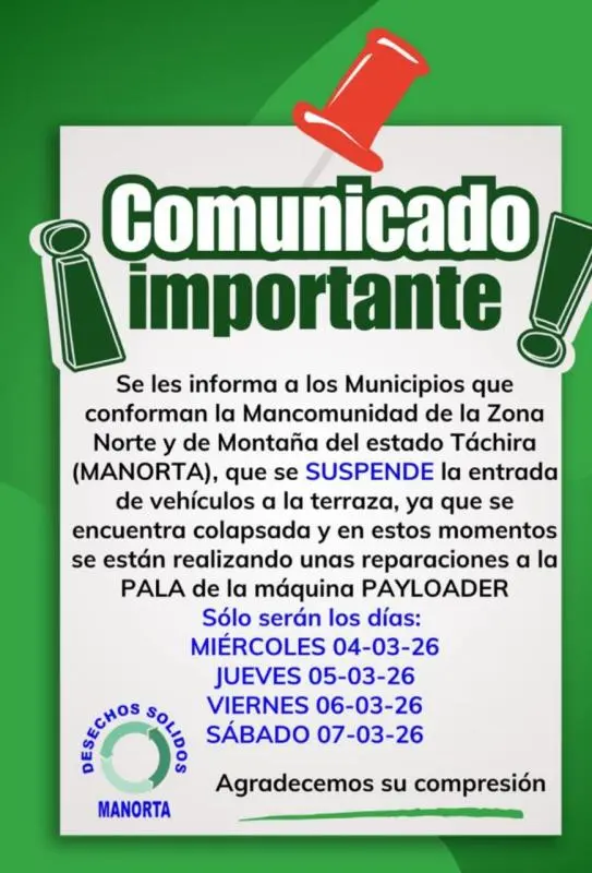 Las alcaldías de Junín, Capacho Nuevo y Capacho Viejo suspenden la recolección de basura por fallas en el vertedero y…