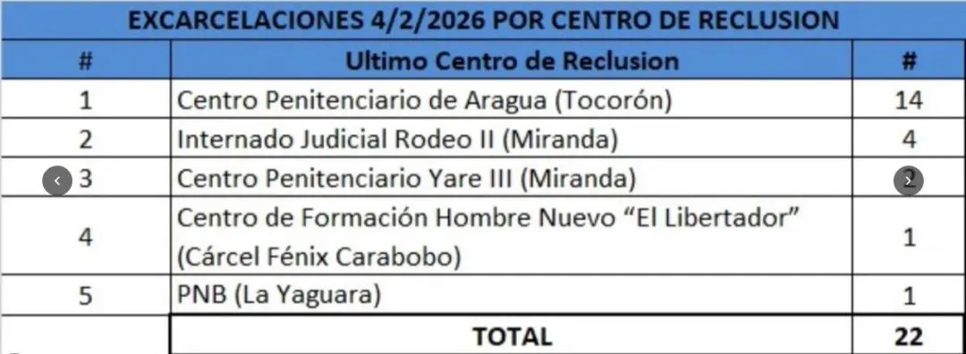 Al menos 22 presos políticos fueron excarcelados este miércoles en Venezuela, informó la ONG Foro Penal, a la espera de…
