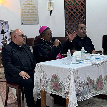Monseñor Lisandro Rivas, obispo de la Diócesis de San Cristóbal, en compañía del rector del santuario, presbítero Emmanuel Pernía, y el Vicario Episcopal de Comunicación,…
