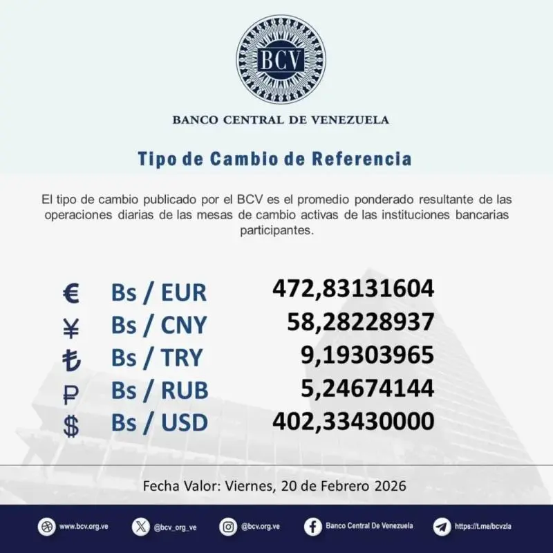 Sube el precio del dólar oficial. A 402,33 bolívares por dólar se cotizó el tipo de cambio oficial la tarde de este jueves 19 de…