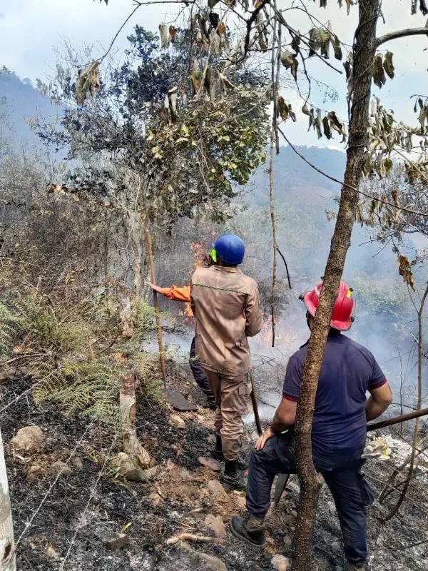 Efectivos del Cuerpo de Bomberos del municipio Jáuregui, en conjunto con Protección Civil e Inparques, atienden de emergencia un incendio de vegetación media-alta que se…