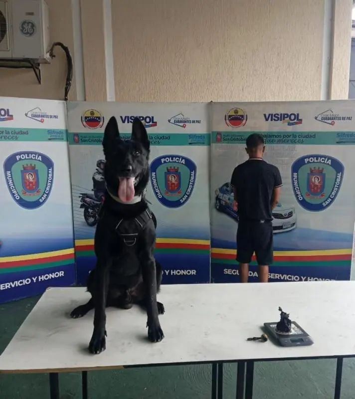 La Unidad Canina de la Policía Municipal de San Cristóbal y su oficial can "Dark", logró la aprehensión de un ciudadano por posesión de presunta…