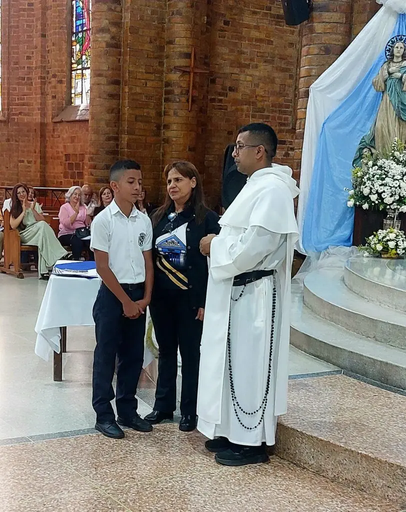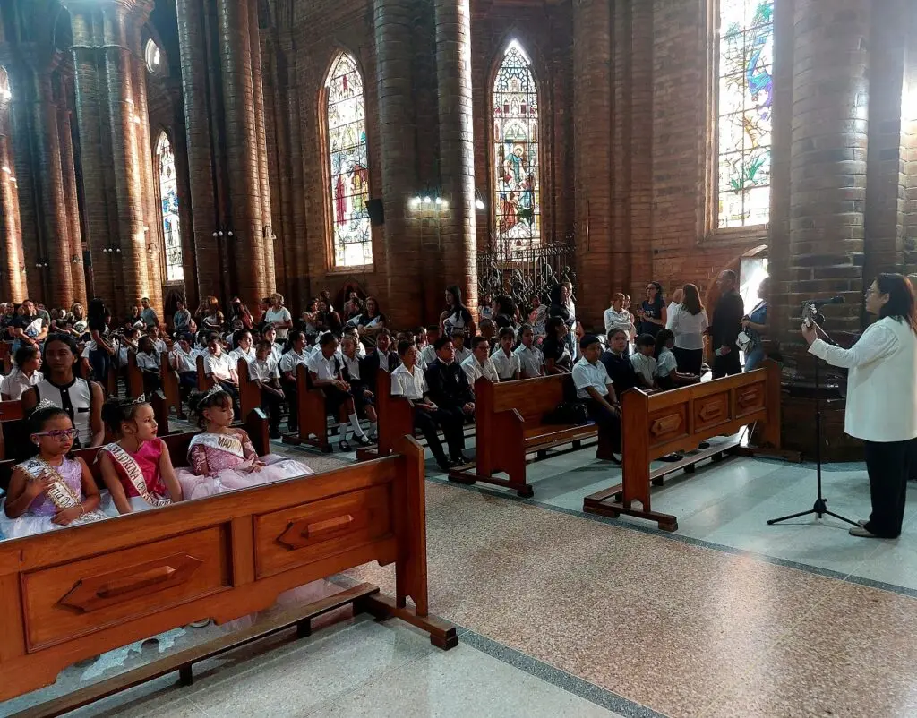 En ese día festivo, en la iglesia Santa Bárbara de Rubio, se reunieron directivos, docentes, estudiantes, egresados, padres, representantes e invitados especiales para ser partícipes del programa central. Frente al altar, la imagen de la Inmaculada Concepción y el estandarte del colegio. Símbolos de devoción y formación.