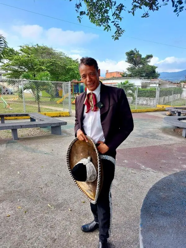Caraqueño de nacimiento, llegó a la Ciudad Pontálida a los siete años de edad. Ahora tiene 44. Es enfermero graduado, pero ante las precariedades económicas, se decidió por el comercio informal. Es así que cuando no anda vestido de mariachi, trabaja como vendedor ambulante, ofreciendo dulces, brownies y postres.