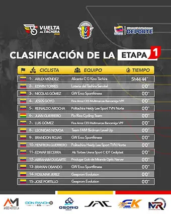Arlex Méndez y Edwin Torres, 1-2 en primera etapa del giro tachirense