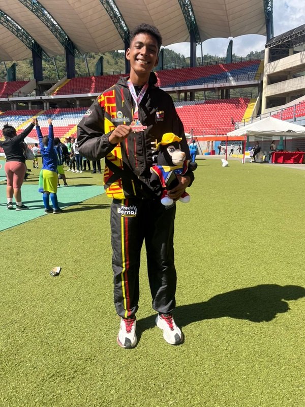 Andrade, obtuvo la medalla de bronce en salto largo con un registro de 5,79 metros. El atleta, estudiante del Centro Educativo de Talento Deportivo “María Lara” y entrenado por Diana Vásquez, avanzó a la final luego de clasificar entre los ocho mejores competidores de la ronda preliminar. Su marca final superó ampliamente los 5,49 metros con los que aseguró su clasificación a la justa comunal y también su mejor registro previo de 5,52 metros, logrado en competencias anteriores.