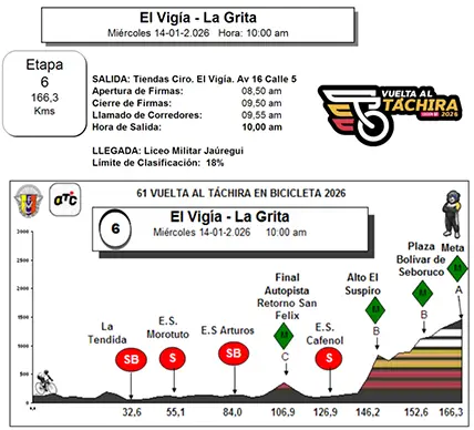 La mítica llegada en la Atenas del Táchira, la temida cuesta para arribar al liceo estudiantil castrense despejará muchas dudas, si la experiencia se impone a la juventud o a la inversa, si definitivamente se está en puerta de una nueva era del ciclismo dorado del Táchira y Venezuela.