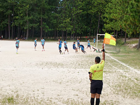 En intervalos de 20 minutos se divide cada tiempo, al llegar el descanso, los equipos se refrescan en los laterales del campo, atentos al pitazo del juez central que anuncia el regreso a la acción.