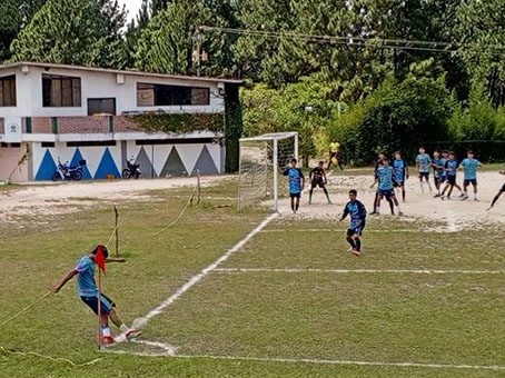 Tres juegos se desarrollan en simultáneo con equipos de distintas edades. Niños desde 6 hasta 14 años de edad, respectivamente.