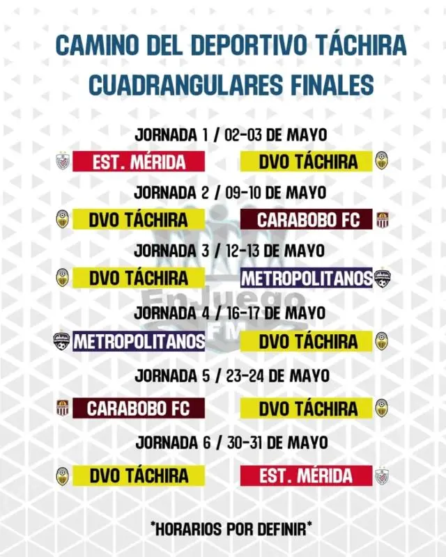 El Deportivo Táchira comienza de forastero el cuadrangular “B” del Torneo Apertura 2026 de la Liga FutVe, se verá las caras con su padrino y sempiterno rival Estudiantes de Mérida, en compromiso que tendrá como marco el estadio Metropolitano, el Coloso de Sumba, juego programado para este fin de seman