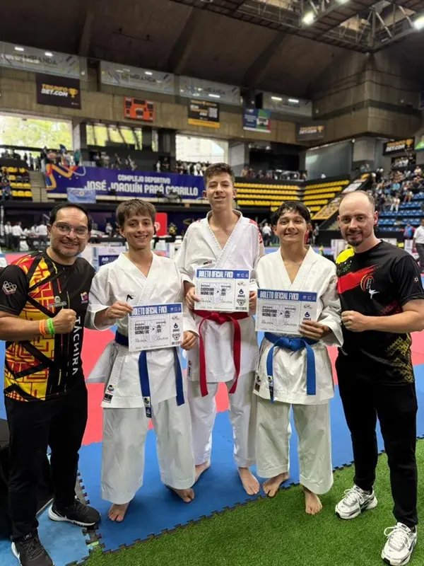 En la modalidad por equipos, la representación masculina integrada por Andrés Castro, Gabriel Cáceres y Daniel Galviz logró su clasificación tras competir en kata por equipos. El equipo femenino de kumite, conformado por Fabiana Cardozo, Annabella Acevedo y Anthonella Jordan también obtuvo su cupo para los JDNJ 2026.