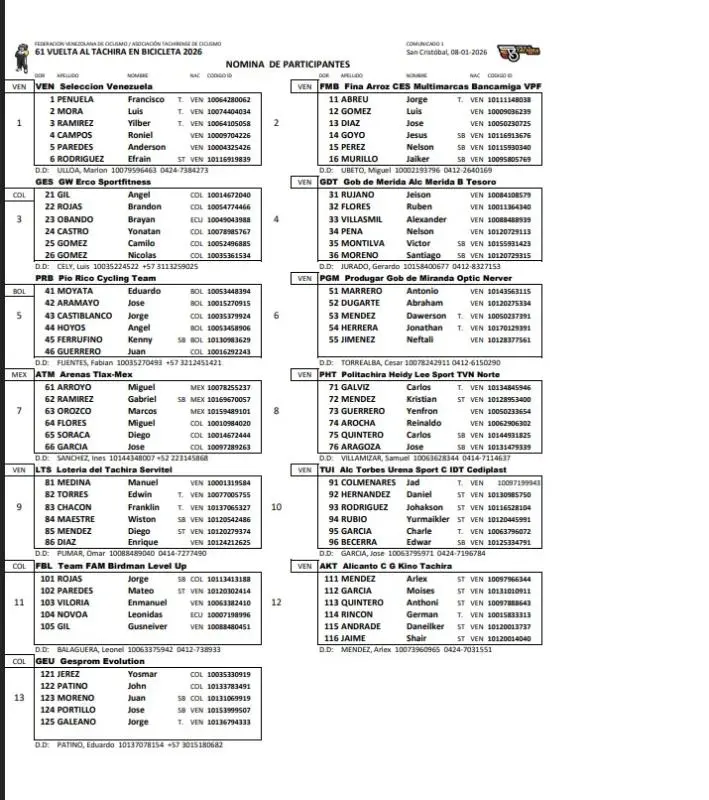 Para superar las bajas de los dos conjuntos trujillanos, Comité Organizador y Asociación Tachirense de Ciclismo, con la venia de la Federación Venezolana de Ciclismo, presidida por la dirigente Anaís Muñoz, se conformó un seleccionado nacional encabezado por el tachirense Luis Mora, flamante campeón de la Vuelta a Trujillo, de 2025, y candidato para pelear el galardón.