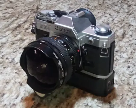 Haciendo esta crónica contacto a Samuel Trevisi y me cuenta que era un lente ojo de pez, me mostró la cámara con que se tomó esa foto que a continuación les muestro.