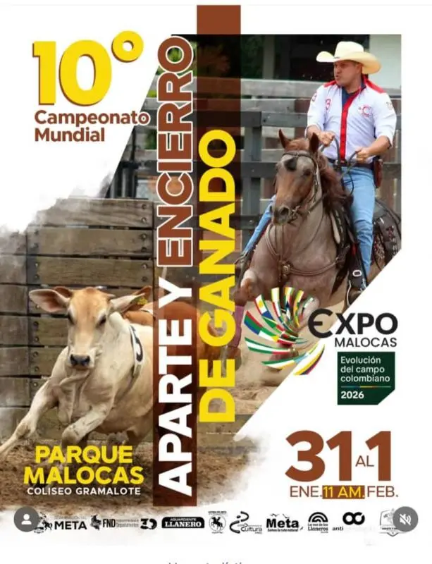Con esta programación, el Campeonato Mundial de Aparte y Encierro en Expomalocas 2026 invita a propios y visitantes a vivir el llano, sentir su cultura y reconocer el valor del trabajo campesino y ganadero que ha forjado la identidad del Meta y del país.