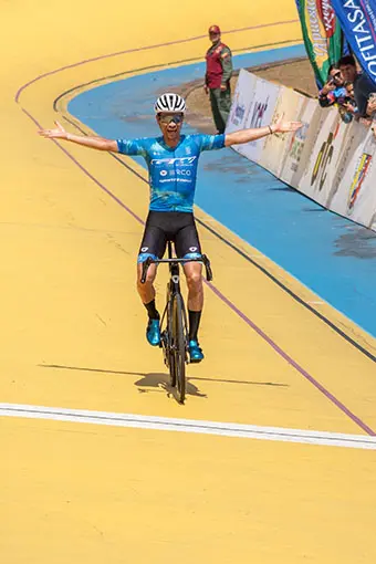 El experimentado ciclista ingresó al Velódromo “J.J. Mora”, brazos en alto en señal de victoria; el colombiano Ángel Gil ganó en solitario la etapa de cierre, la décima