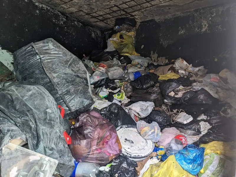Abarrotado de basura depósito del Bloque 4 en San Antonio