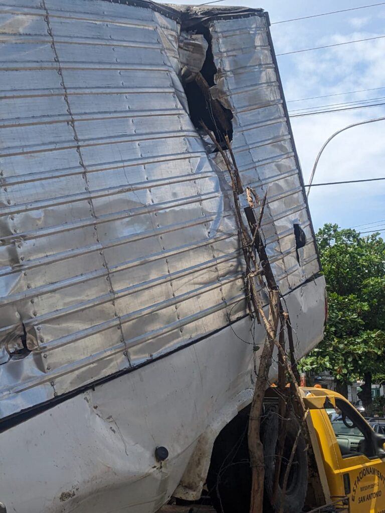 El conductor del camión, identificado como Tulio Carvajal, de 48 años, resultó lesionado al quedar atrapado en el vehículo. Funcionarios del Cuerpo de Bomberos de San Antonio, lograron rescatarlo y lo trasladaron al hospital Dr. Samuel Darío Maldonado.
