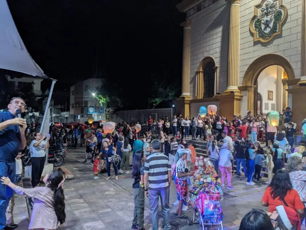 El atrio de la plaza Bolívar, en la ciudad de San Antonio del Táchira, justo al frente de la Basílica Menor, fue el escenario para la noche de globos este martes 30 de diciembre.