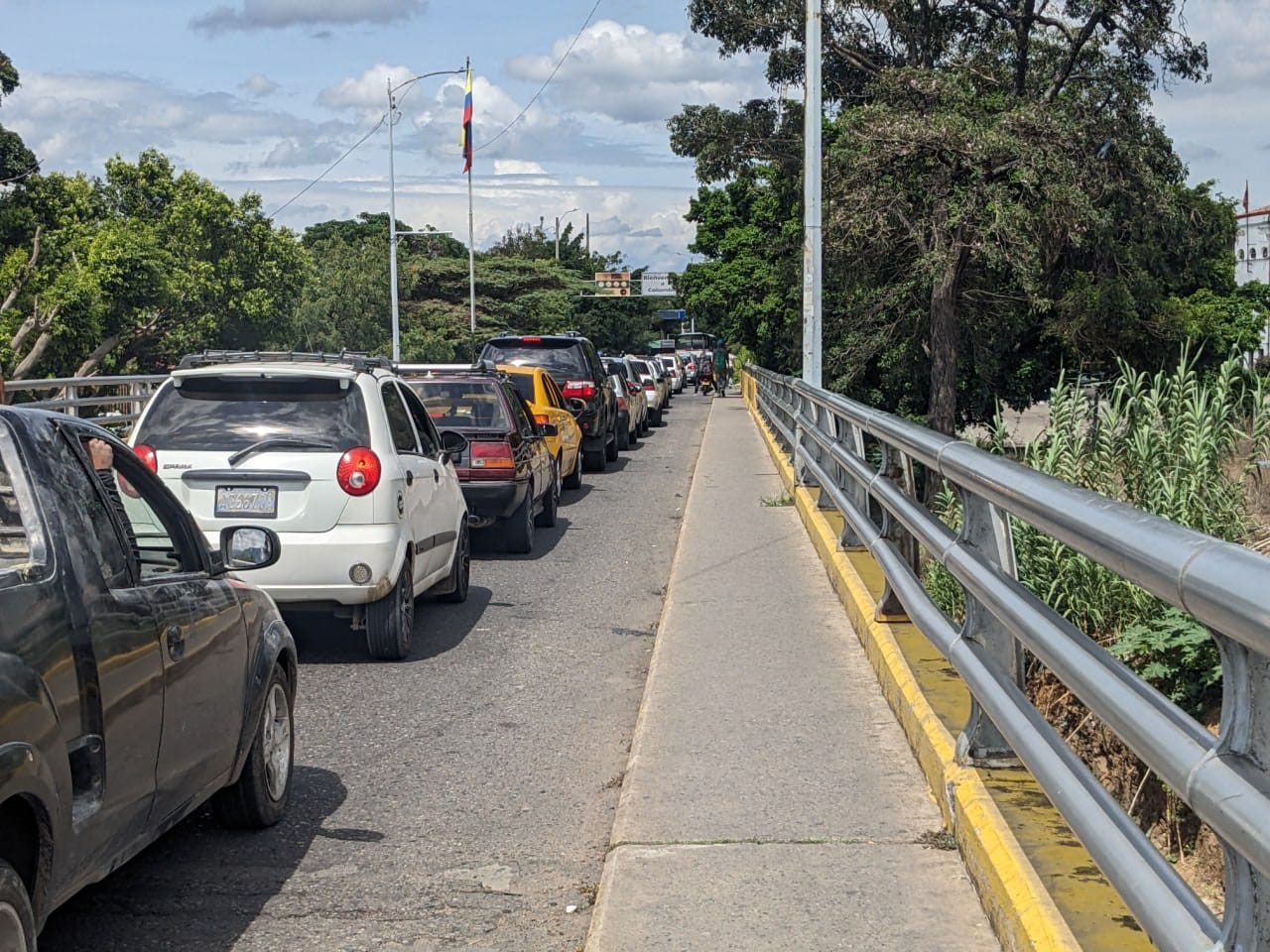 Cerca de las 11:00 a.m. de este viernes 17 de octubre, una larga fila de vehículos se divisaba en el carril de ingreso a Colombia por el puente internacional Simón Bolívar.