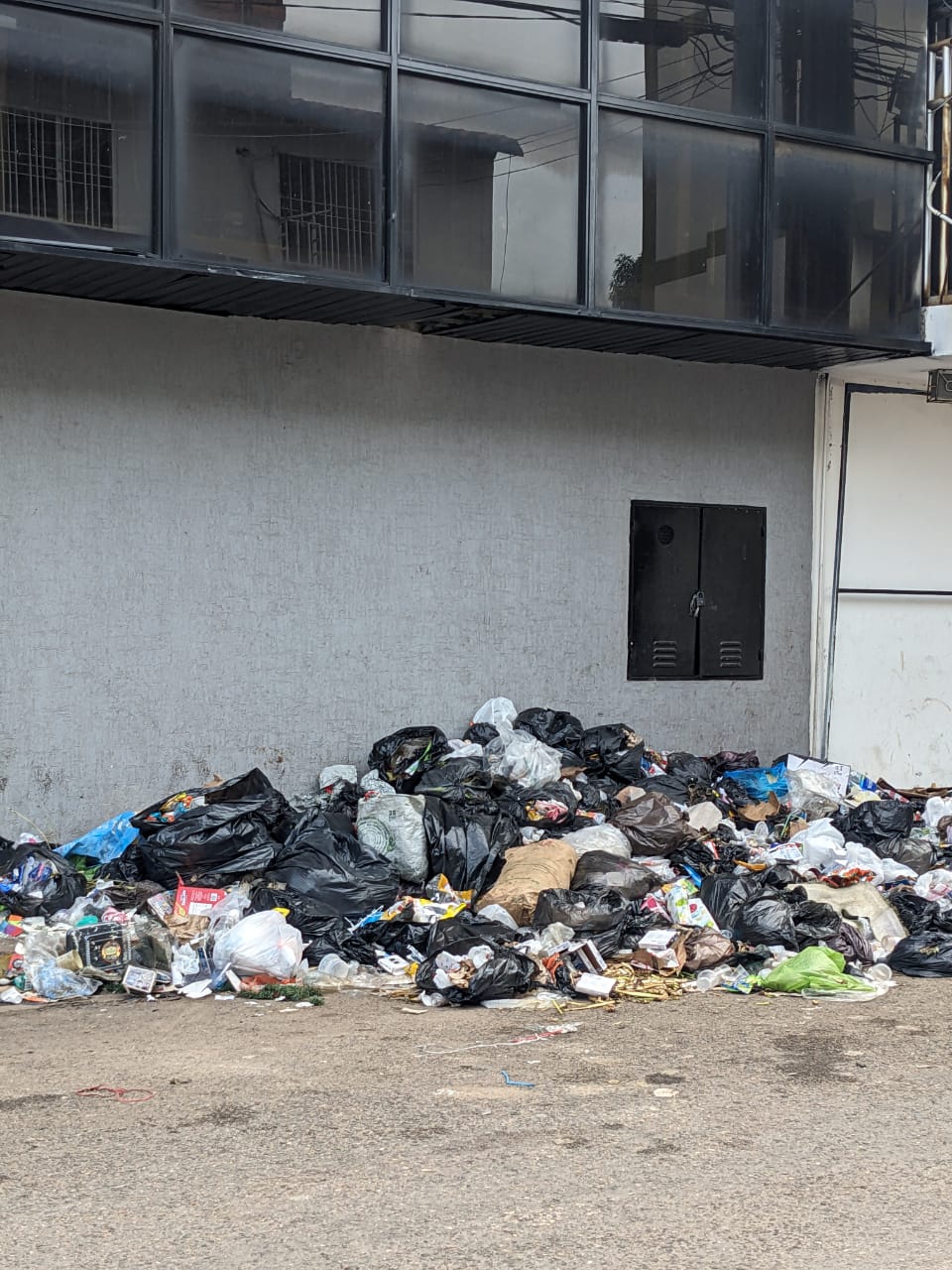 Montañas de desechos sólidos se observaban en varios puntos del casco central de la Villa Heroica, y a merced de los perros de calle que esparcen las bolsas en las aceras.
