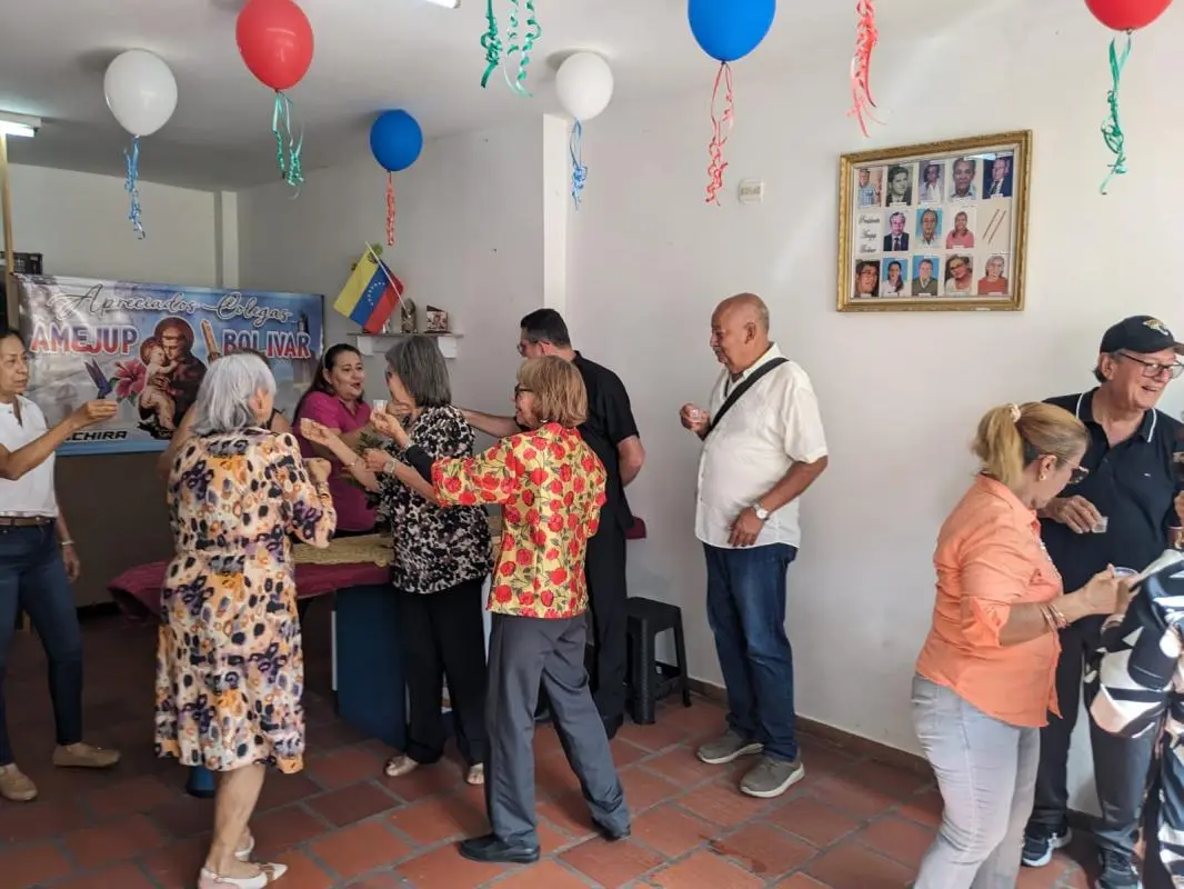 Una vez ingresaron a las instalaciones, procedieron al brindis y al compartir. En un cuadro, están las fotos de todos los profesores que han llevado la batuta de la Amejup en el municipio fronterizo Bolívar.