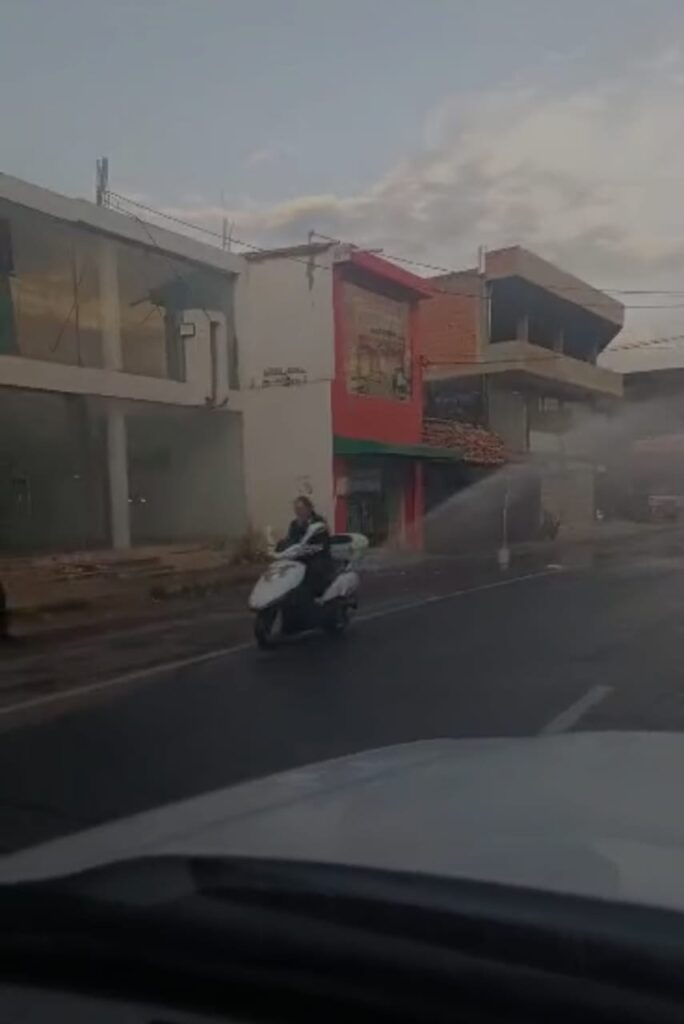 Conductores hicieron llegar el reporte al equipo reporteril de La Nación. En las imágenes se puede apreciar cómo el fuerte chorro sale con dirección a la vía y complica la circulación en ese punto.