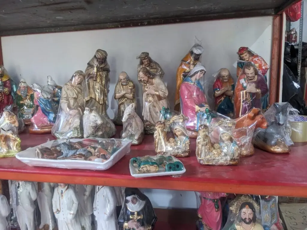 Lucy Vaca, encargada de una pequeña fábrica, ofrece nacimientos en todos los tamaños con precios que van desde los 400.000 hasta los 3.000 pesos. El precio varía dependiendo del tamaño de las imágenes.