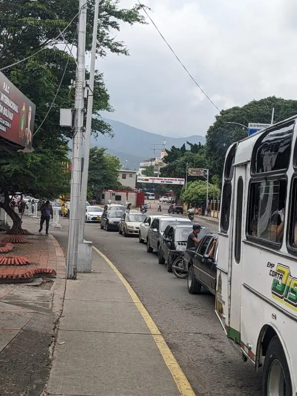 La larga fila de vehículos se divisaba a lo largo de la emblemática avenida Venezuela, atravesaba la aduana principal de la ciudad y seguía en el carril que da hacia el vecino país del tramo binacional.