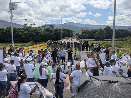Desde las 9:30 a.m. del sábado 11 de octubre, hasta las 2:30 p.m., el tránsito estuvo trastocado por los 315 metros del puente internacional Simón Bolívar. Los manifestantes llegaron casi a la mitad del paso.