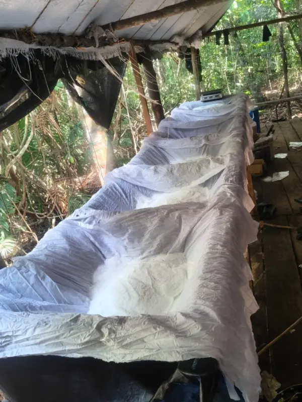 «En el registro del lugar, se hallaron 539 kilos de clorhidrato de cocaína y 672 galones de clorhidrato de cocaína en suspensión», detalló el Ejército en el reporte al puntualizar que también se incautaron más de 6.000 galones en insumos líquidos y 1.540 kilos de insumos sólidos.