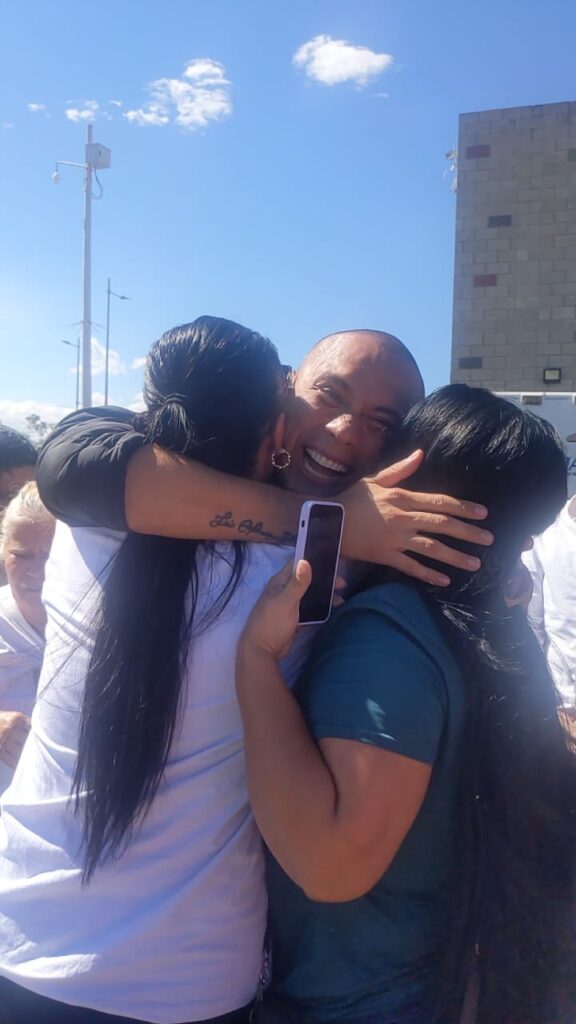 En las imágenes se observan a los parientes de Iván Colmenares, uno de los colombianos liberados, con la emoción a flor de piel al ver al abogado en libertad.