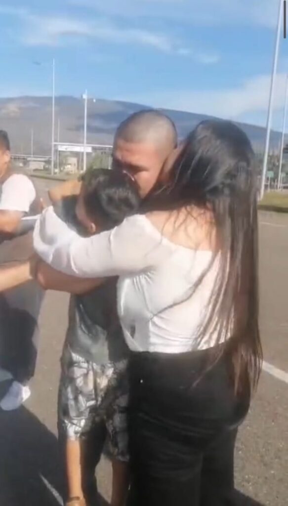 «Te amo, mi vida», era la frase que profería su madre al poder tenerlo entre sus brazos nuevamente, pues vivió una pesadilla de más de un mes al no saber el paradero de su hijo, quien fue movilizado por la Dirección General de Contrainteligencia Militar (DGCIM) de la parroquia Tienditas, sin dar detalles.