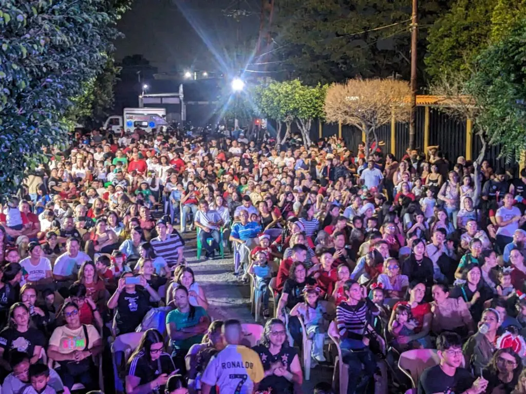 Cerca de las 8:40 p.m., los asistentes se reunieron con sus cámaras, listas para los videos y las fotos, justo al frente del pesebre, para disfrutar del encendido y de los fuegos artificiales que alumbraron por varios segundos el cielo fronterizo.