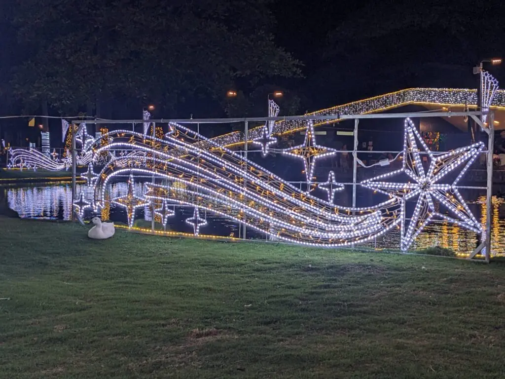El lago y las aves también realzan con la gran cantidad de luces que desplegaron. El gigante árbol tampoco pasa desapercibido. Cada detalle instalado ha captado la atención de los asistentes. También los enormes regalos y las paredes forradas de luces.