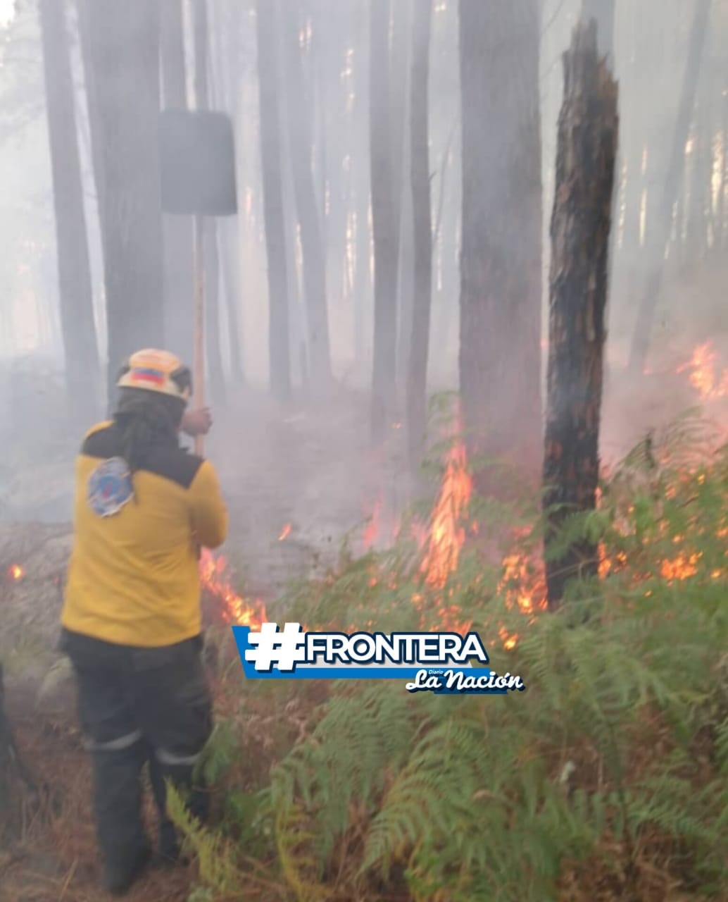 La conflagración, según fuentes consultadas por La Nación, se presentó en el sector Los Inguanzos, donde más de 30 hectáreas de reserva de pinos y vegetación autóctona (helechos), fueron consumidas por el fuego.