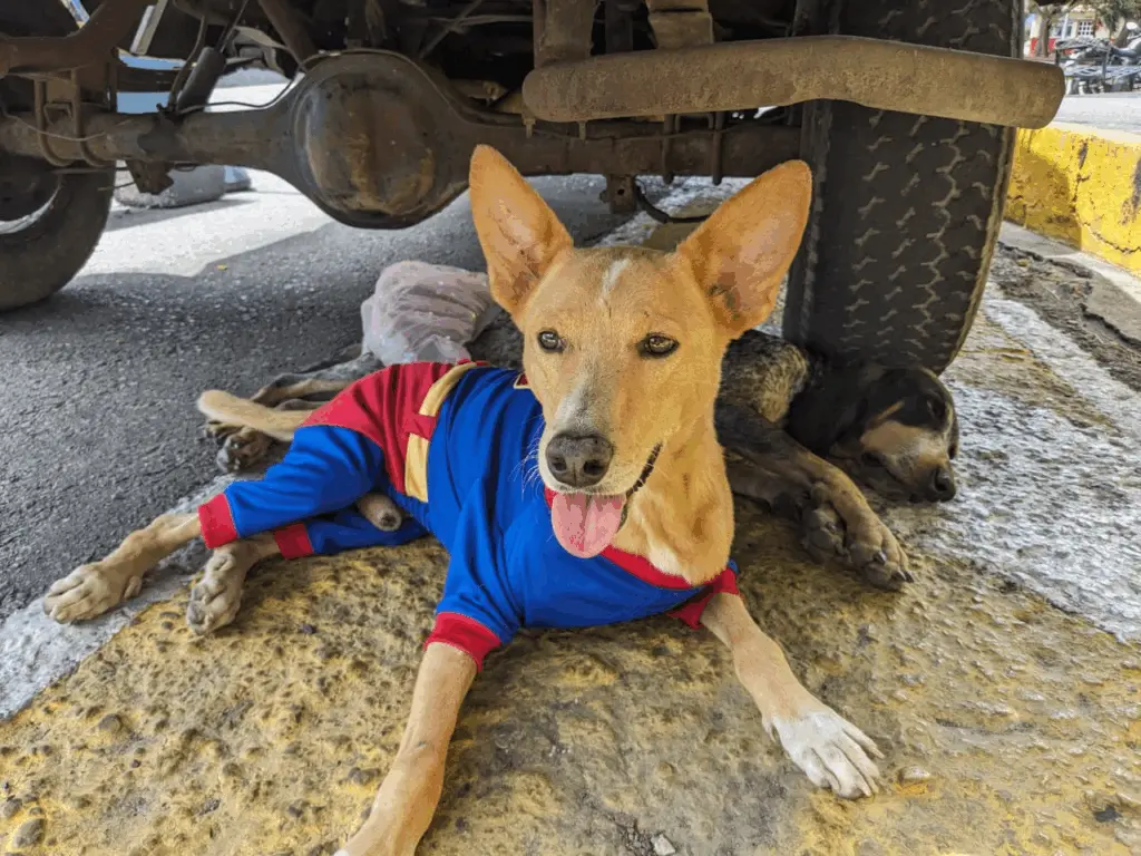 Miguel, perro mestizo, lucía este sábado 1 de noviembre un traje de Superman. Otros caninos también estaban disfrazados en la jornada de adopción de mascotas número 32, que lleva a cabo la fundación Rescatando Huellas en la plaza La Confraternidad, en San Antonio del Táchira.