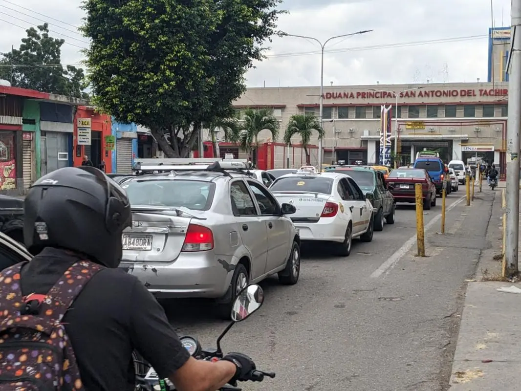 Larga fila de vehículos se registraba este martes 6 de enero en la avenida Venezuela de San Antonio del Táchira, en el municipio fronterizo Bolívar, con dirección al vecino país, Colombia.