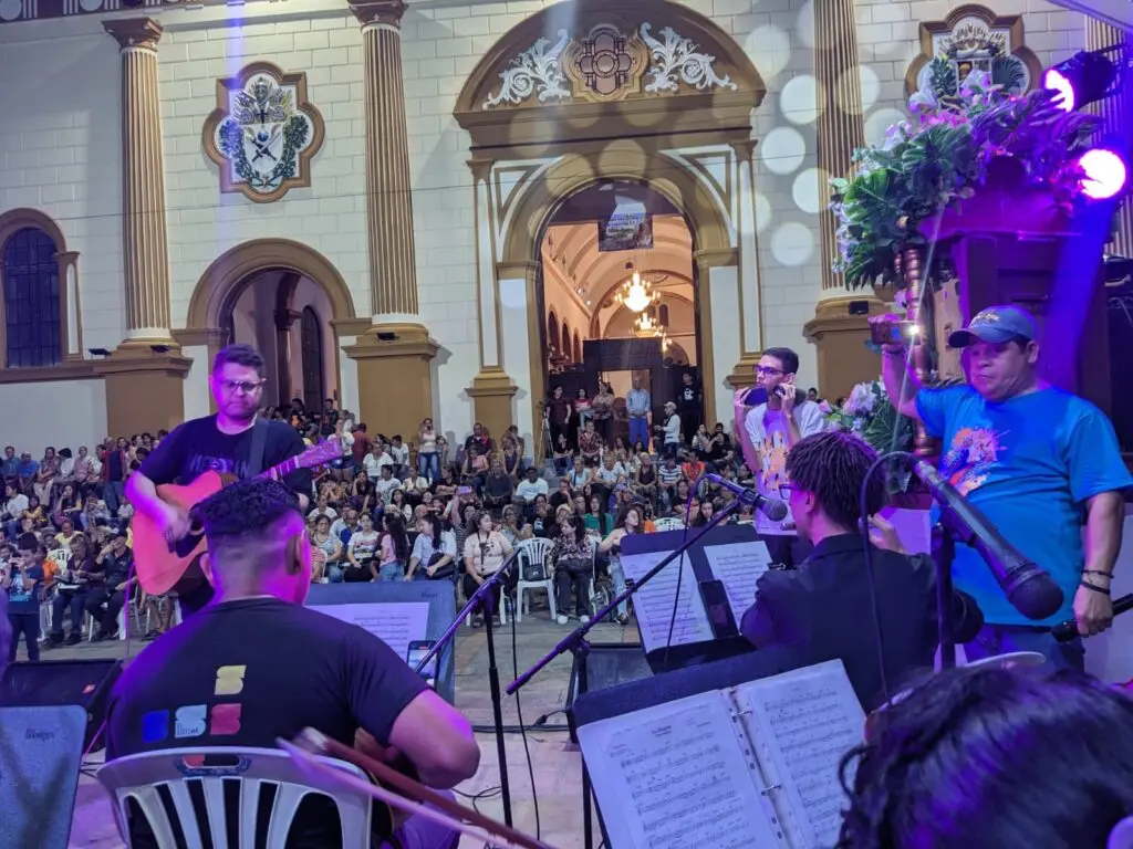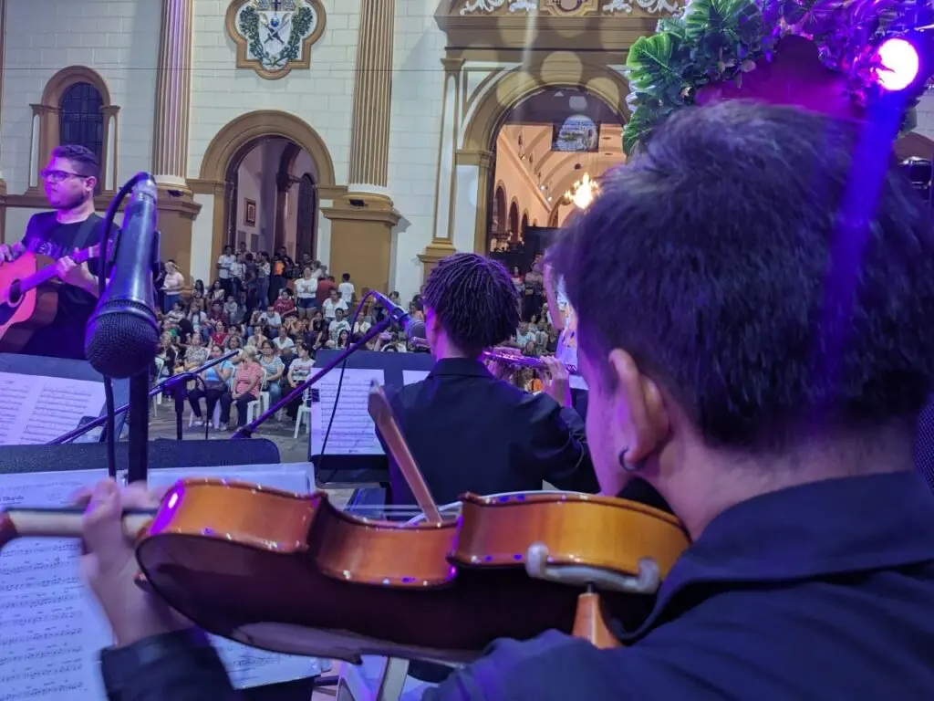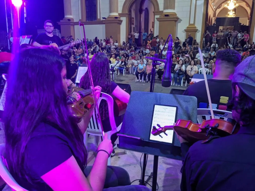 El espectáculo lo abrió la Orquesta Sinfónica, Núcleo San Antonio, deleitando a los cientos de devotos que aplaudieron al ritmo de las gaitas que agarraron vida con la puesta en escena de cada instrumento.