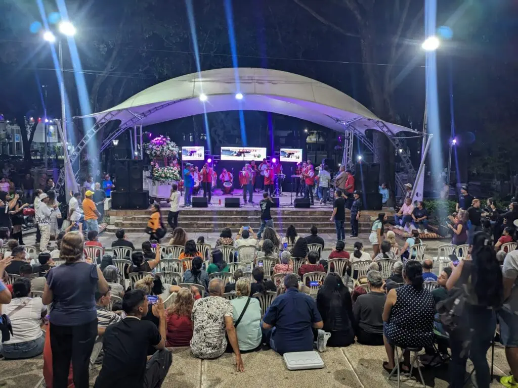 Luego, los Colosos de La Gaita se montaron a la tarima para hacer bailar a los asistentes con emblemáticas letras. La imagen de la Chinita siempre estuvo ahí, engalanada con cada canción.
