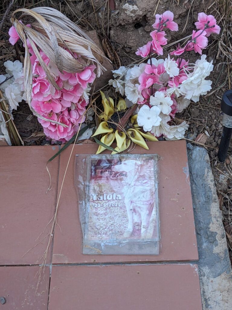 Otras mascotas, como los casos de Talula y Rayo, sus familias decidieron darle el último adiós en este cementerio. En las lápidas, además de sus fotos, están las fechas de sus partidas: el 23 de mayo de 2025 murió la perrita y el 18 de agosto de 2025 Rayo José.