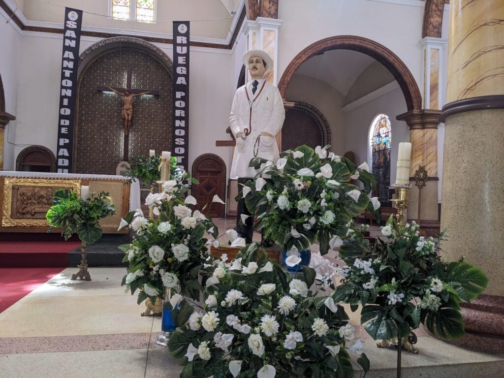 Un cuadro de ambos santos estaba exhibido en la Basílica Menor y a un lado una imagen en yeso del doctor de los pobres.