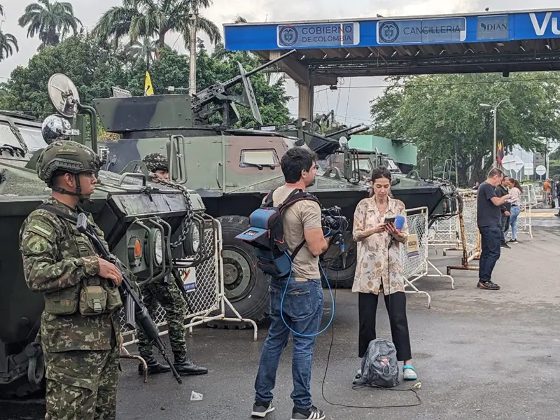 Esa imagen se conjuga con la fuerte presencia de la prensa internacional, la cual está desplegada hasta la mitad del puente internacional Simón Bolívar.