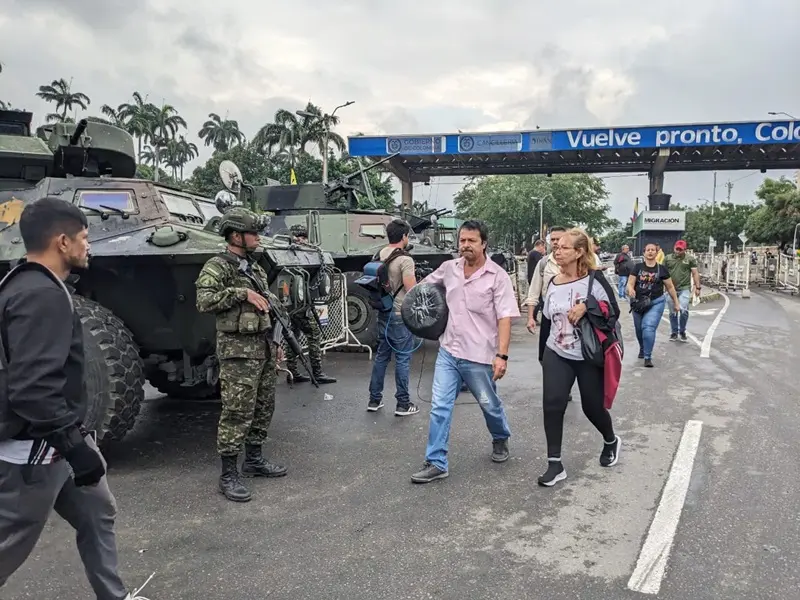 El Ejército de Colombia, junto a sus carros blindados, sigue apostado en La Parada, en el municipio fronterizo de Villa del Rosario, para garantizar la seguridad en la zona.