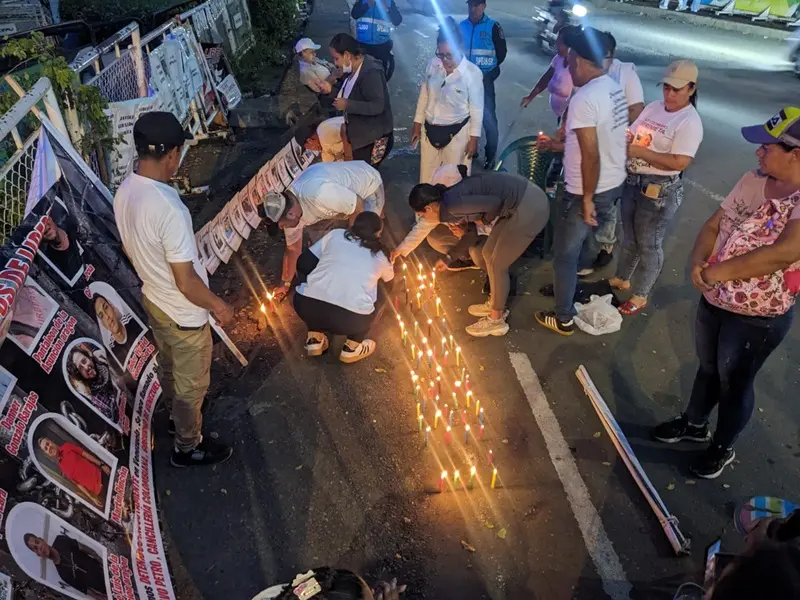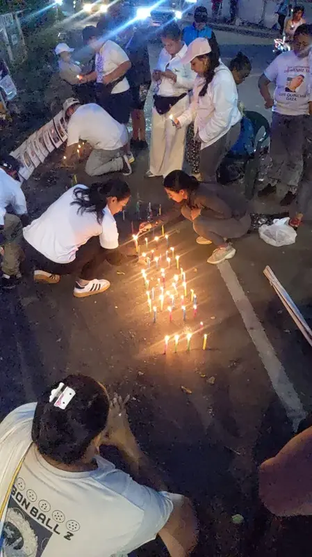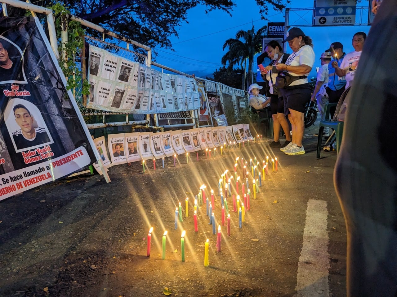 Decenas de velas fueron encendidas por los manifestantes, mientras elevaban oraciones a la Providencia por la pronta liberación de sus parientes.