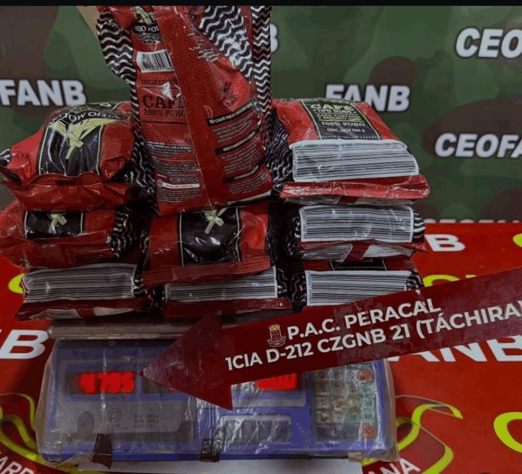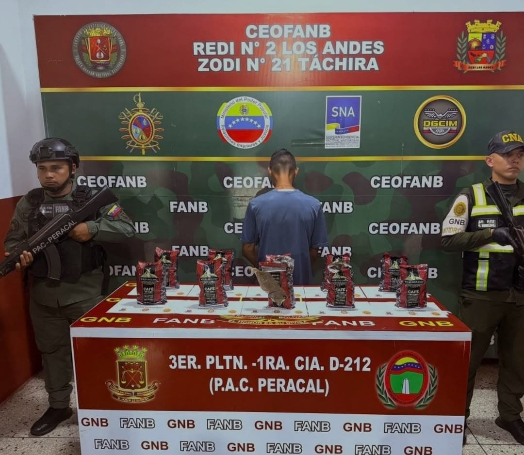Un hombre fue aprehendido en el punto de control de Peracal, en el municipio fronterizo Bolívar, por llevar estupefacientes ocultos en 10 paquetes de café.