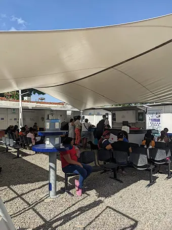 En cada jornada, atienden a un aproximado de 80 migrantes en áreas como medicina general, psicología, odontología y enfermería. También hay una farmacia donde la persona va con el récipe y el entregan los medicamentos.