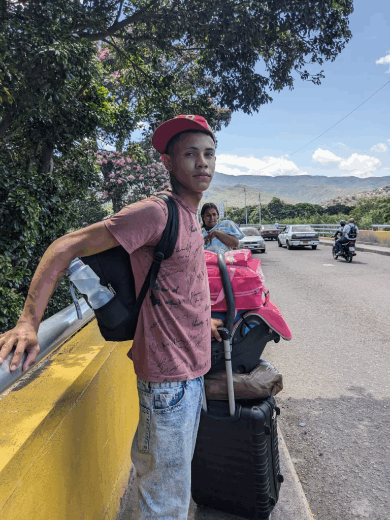 José Vladimir, de 19 años, cruzaba este jueves 28 de agosto el puente internacional Simón Bolívar, junto con otros jóvenes que lo acompañaron en su ruta migratoria. Piensa establecerse en Bucaramanga, en Colombia.