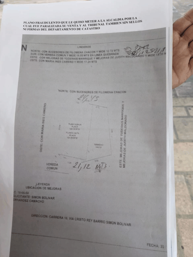 «No tengo documentos fraudulentos. Simplemente quiero que se me escuche y me atiendan la petición que exijo, que se respete lo que me corresponde del patio de mi casa», enfatizó a modo de colofón.