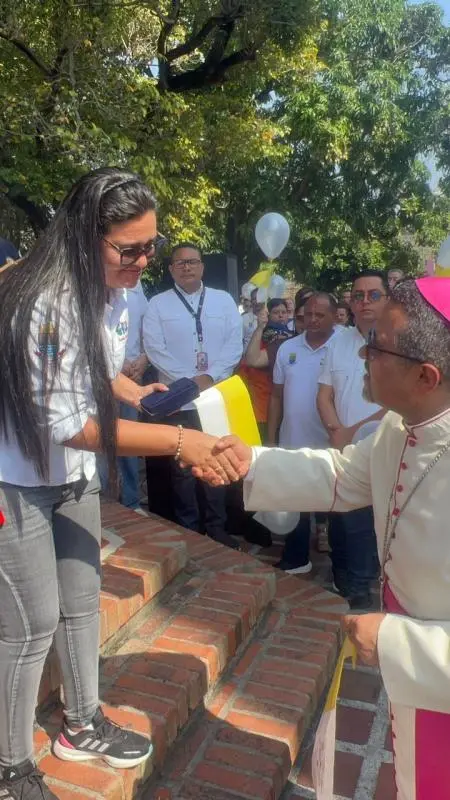 El alcalde de la jurisdicción, Jhon Carillo, se encargó de entregar la orden a monseñor, quien estará hasta el miércoles en la municipalidad.