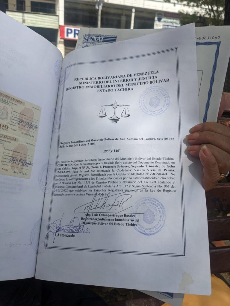 Glenys Colmenares asegura sumar varios meses en San Antonio del Táchira, en el municipio fronterizo Bolívar, exigiendo que le devuelvan su casa, una propiedad en la que figuran como herederos ella y sus tres hermanos.